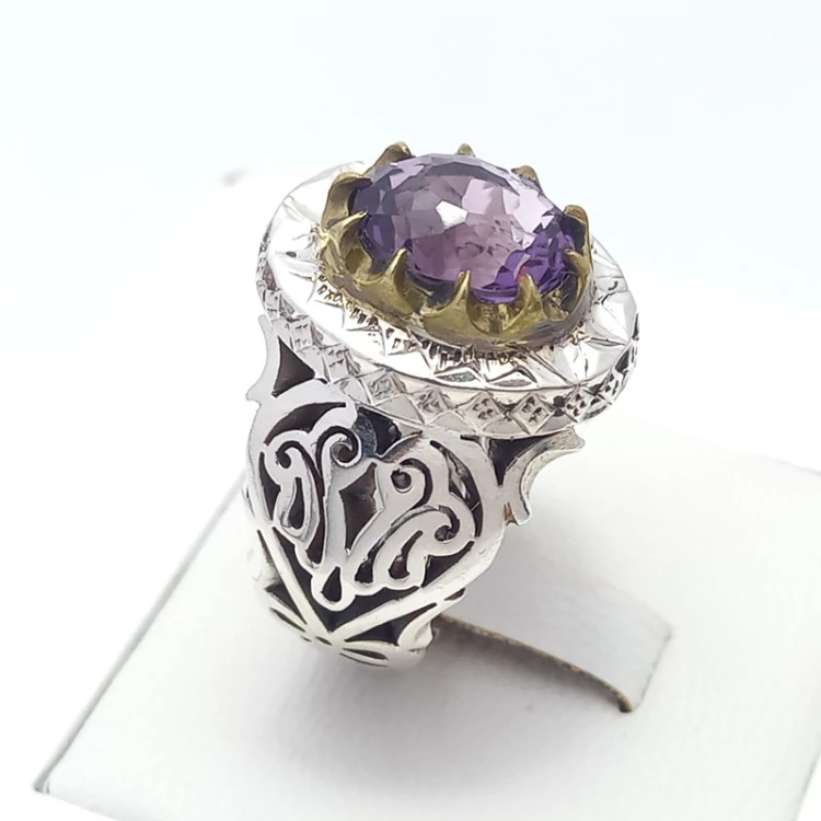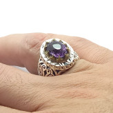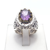 انگشتر نقره مردانه با روکش رادیوم همراه با سنگ آمیتیست