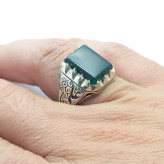 انگشتر نقره مردانه همراه با عقیق سبز 9
