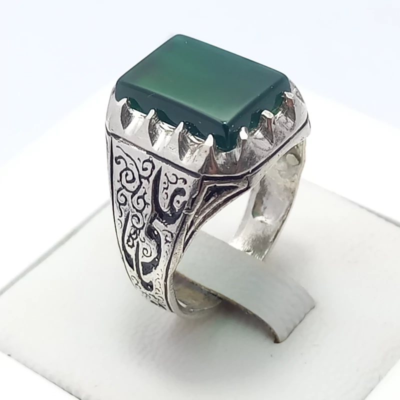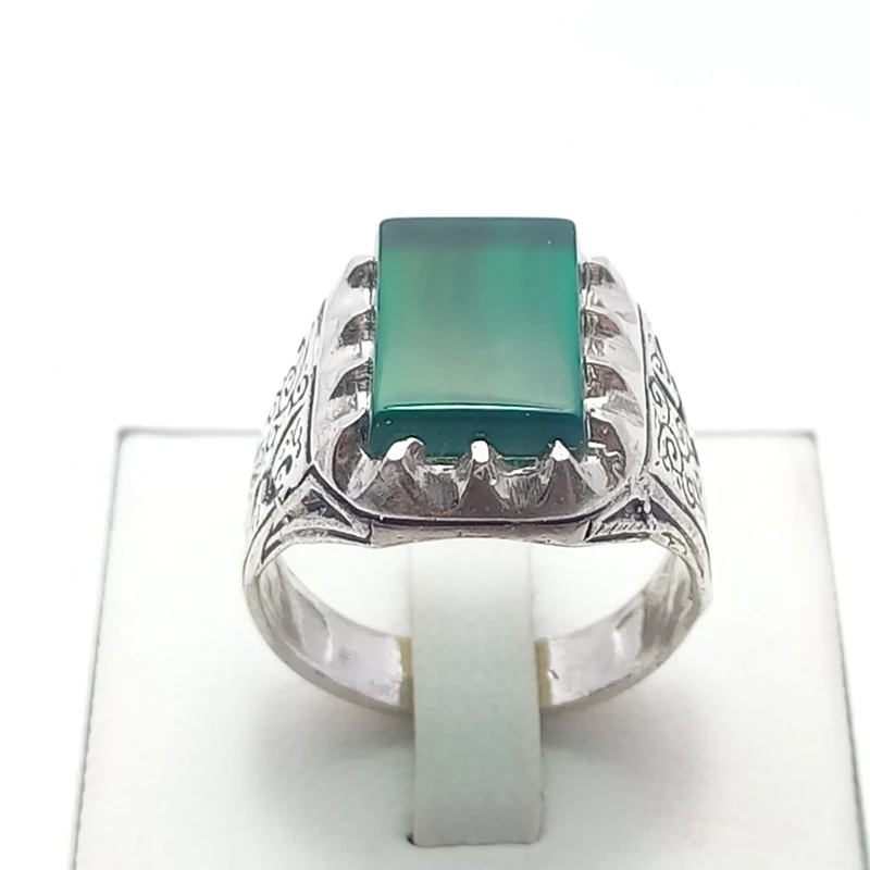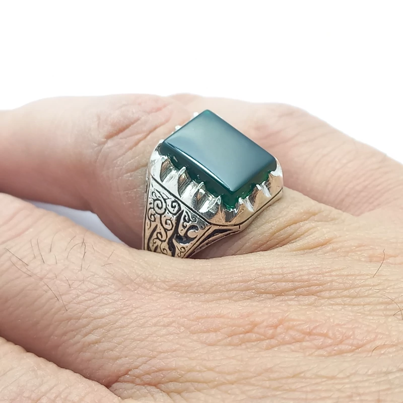 انگشتر نقره مردانه همراه با عقیق سبز 9