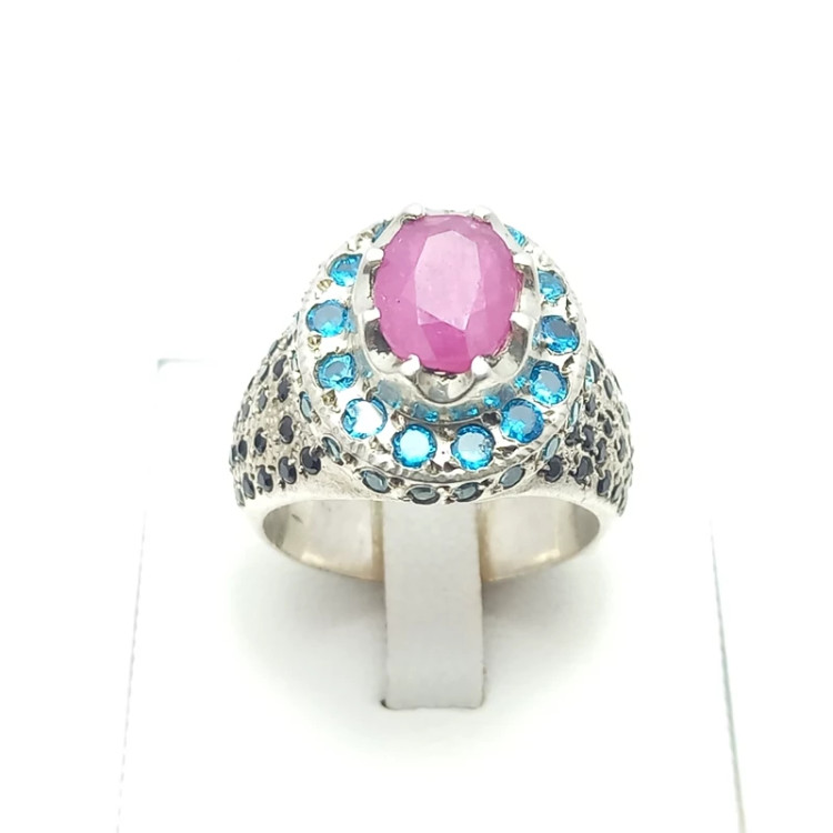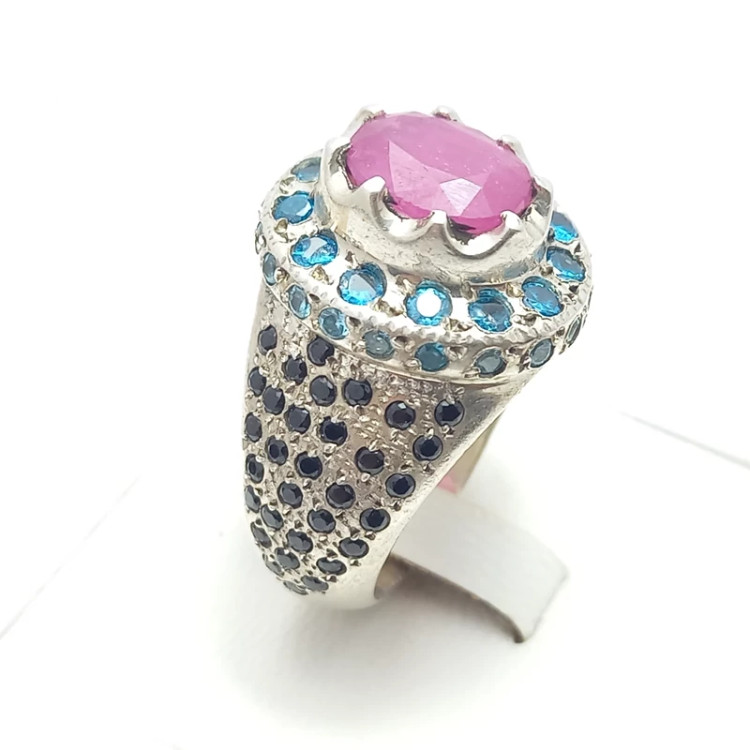 انگشتر نقره مردانه رکاب دست ساز همراه با یاقوت