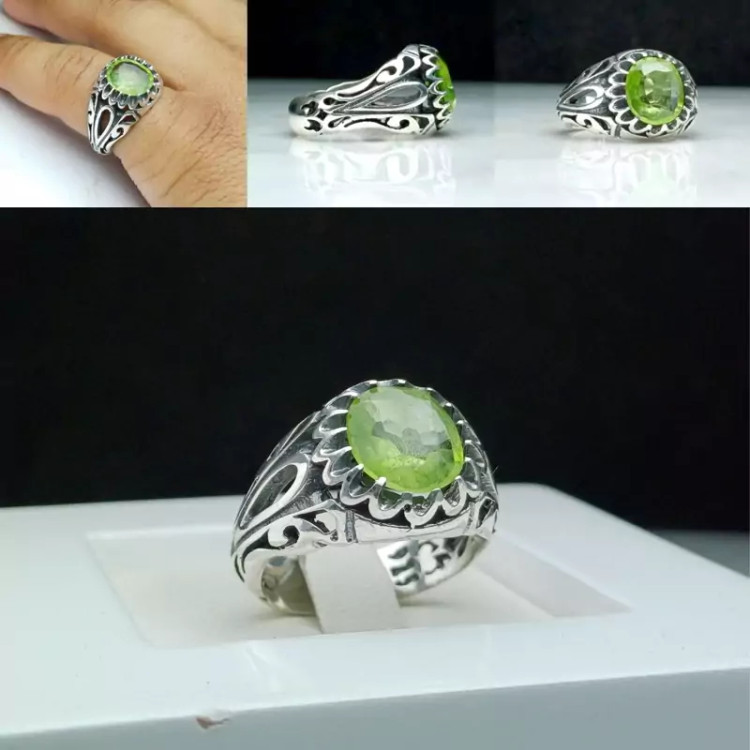 انگشتر مردانه زبرجداصلی رکاب نقره چنگی طرح قلم عیار925ارسال رایگان سایزرایگان