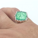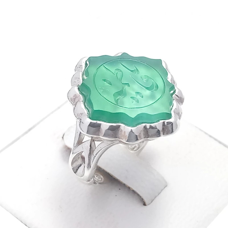 انگشتر نقره مردانه همراه با عقیق سبز تراش شمسه با حکاکی (( یا فاطمه ))