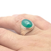 انگشتر نقره رکاب دست ساز مردانه همراه با عقیق سبز دارای حرز امام جواد علیه السلام