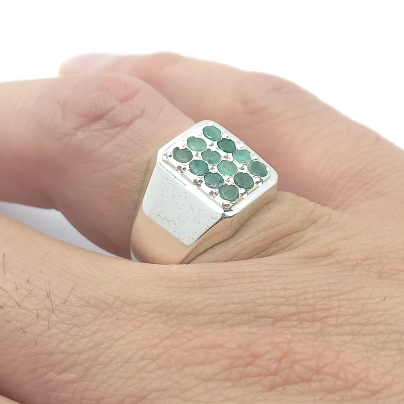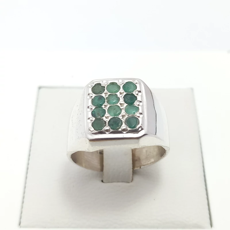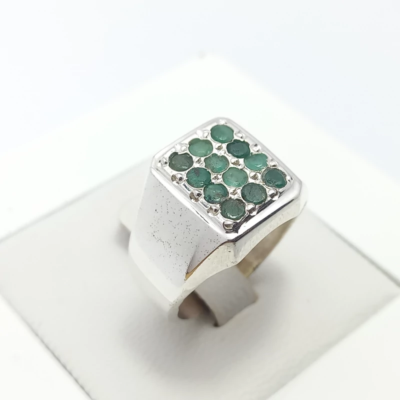 انگشتر نقره رکاب دست ساز همراه با سنگ زمرد اصل
