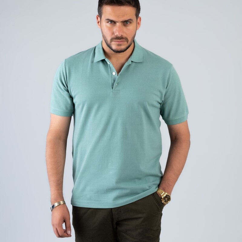 تیشرت جودون استین کوتاه یقه انگلیسی فیروزه ای روشن کدts11017