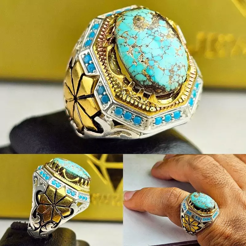 انگشتر مردانه فیروزه نیشابوراصلی .رکاب نقره دورمخراج.ارسال و سایز رایگان
