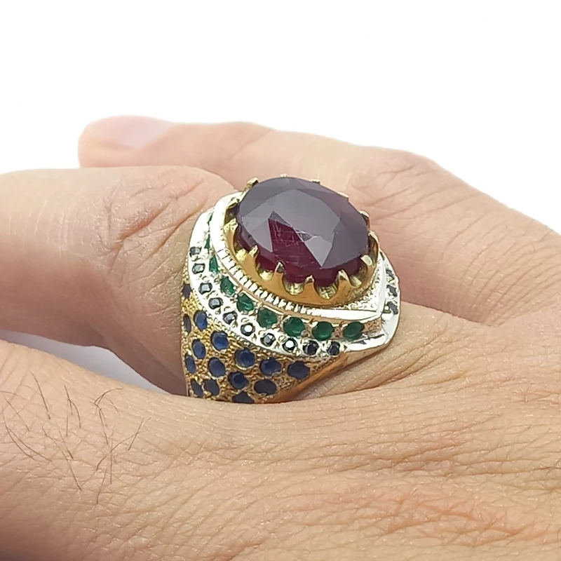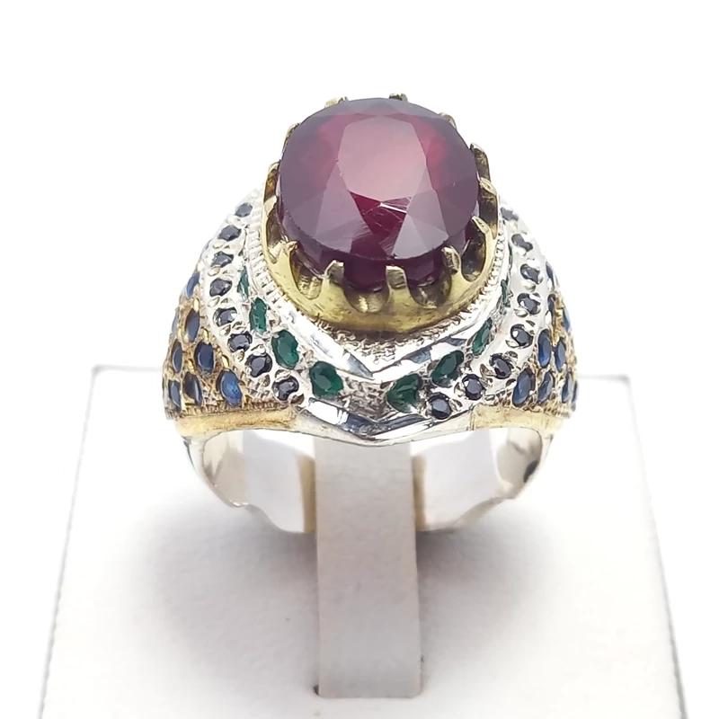 انگشتر نقره رکاب دست ساز مردانه همراه یاقوت سرخ