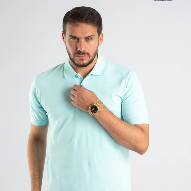 تیشرت جودون یقه انگلیسی استین کوتاه سبز ابی کدts11021
