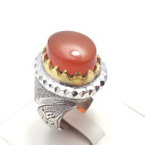 انگشتر نقره رکاب دست ساز مردانه همراه با عقیق یمنی سرخ 1
