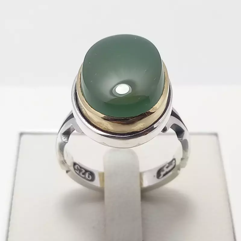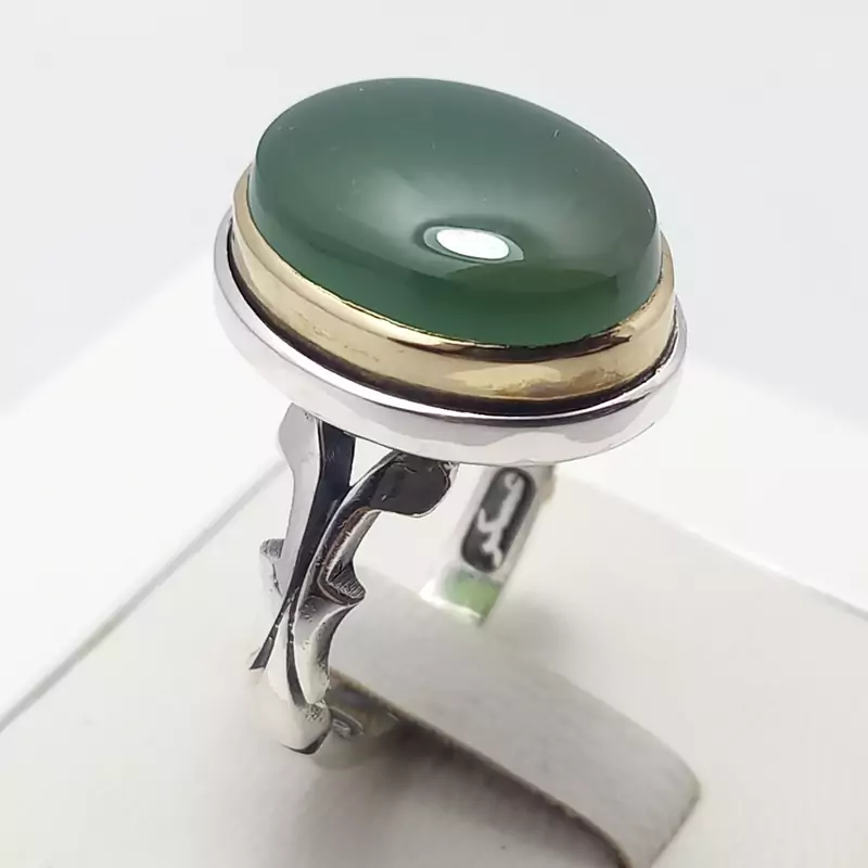 انگشتر نقره مردانه همراه با عقیق سبز