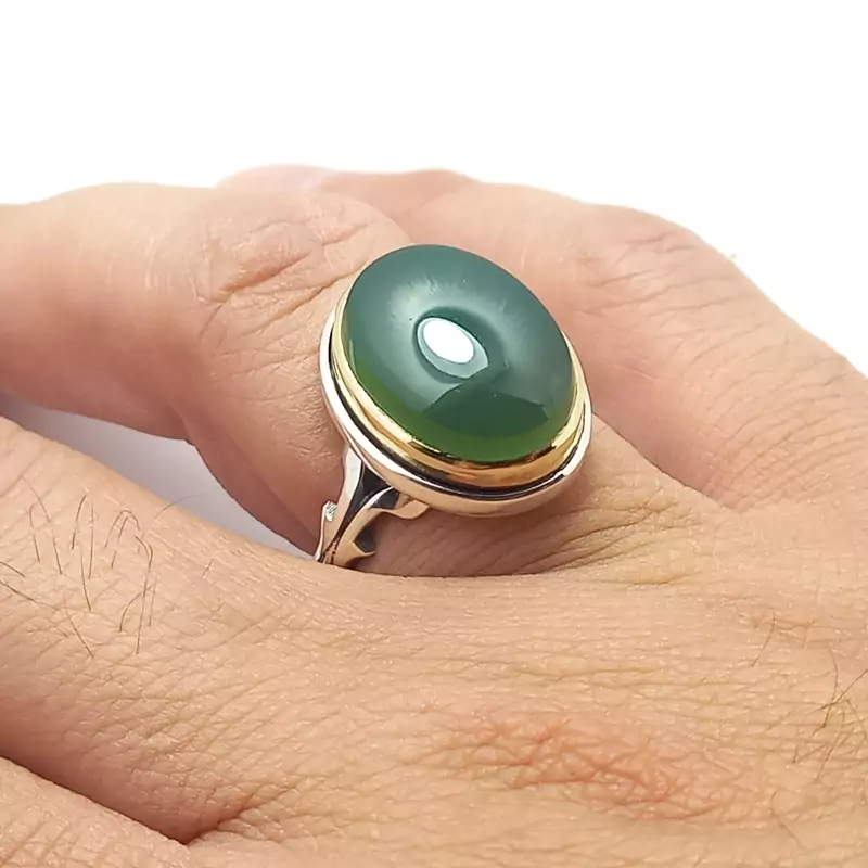 انگشتر نقره مردانه همراه با عقیق سبز