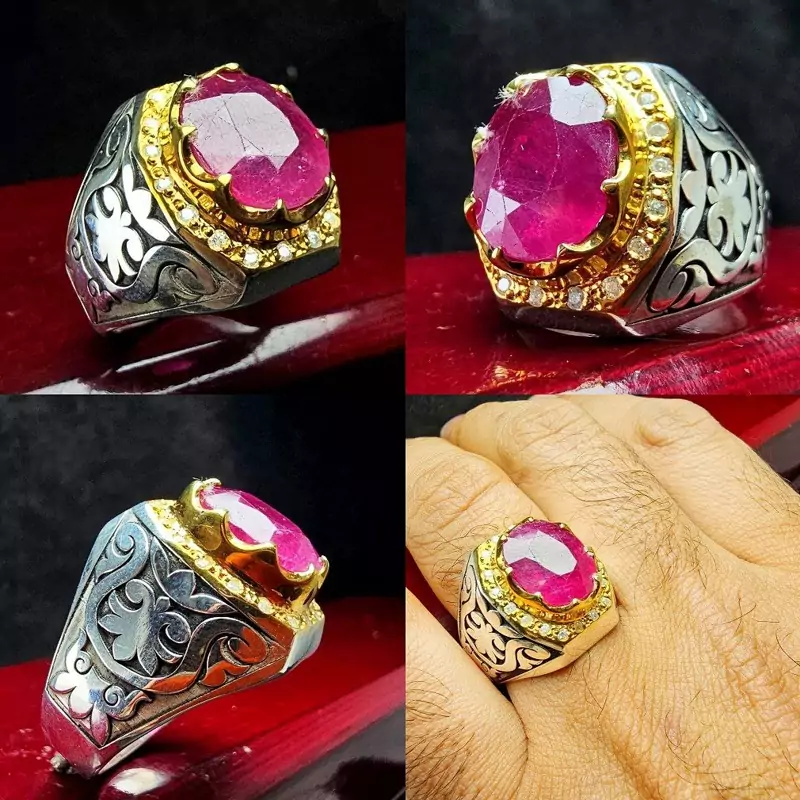 انگشتر مردانه یاقوت قرمز اصلی رکاب نقره چنگی دستسازمخراج برلیان عیار925ارسال رایگان سایزرایگان