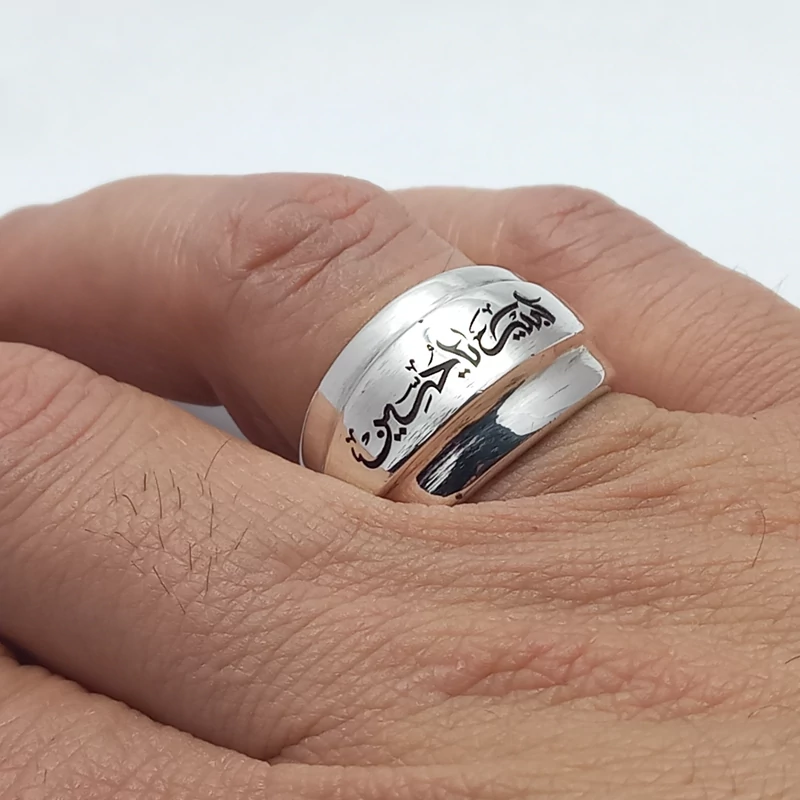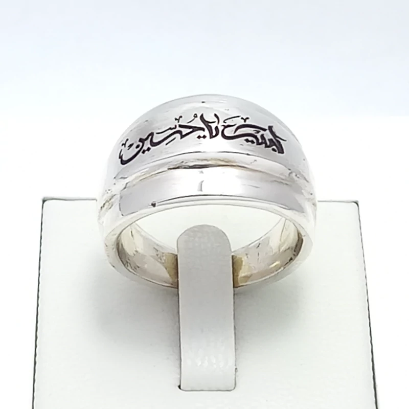 انگشتر نقره رکاب دست ساز مردانه حکاکی (( لبیک یا حسین ))