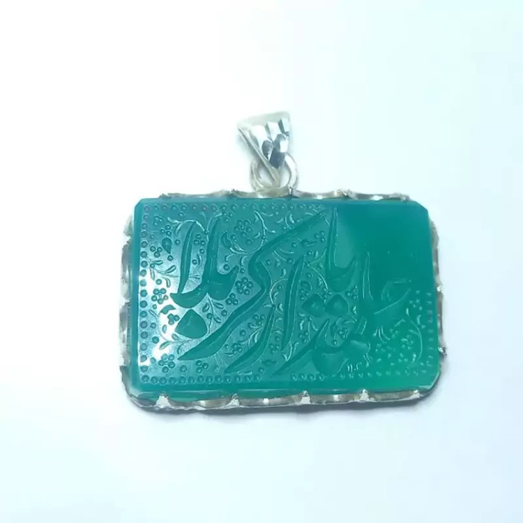 مدال نقره همراه عقیق سبز و حکاکی عبارت (( یا علمدار کربلا ))