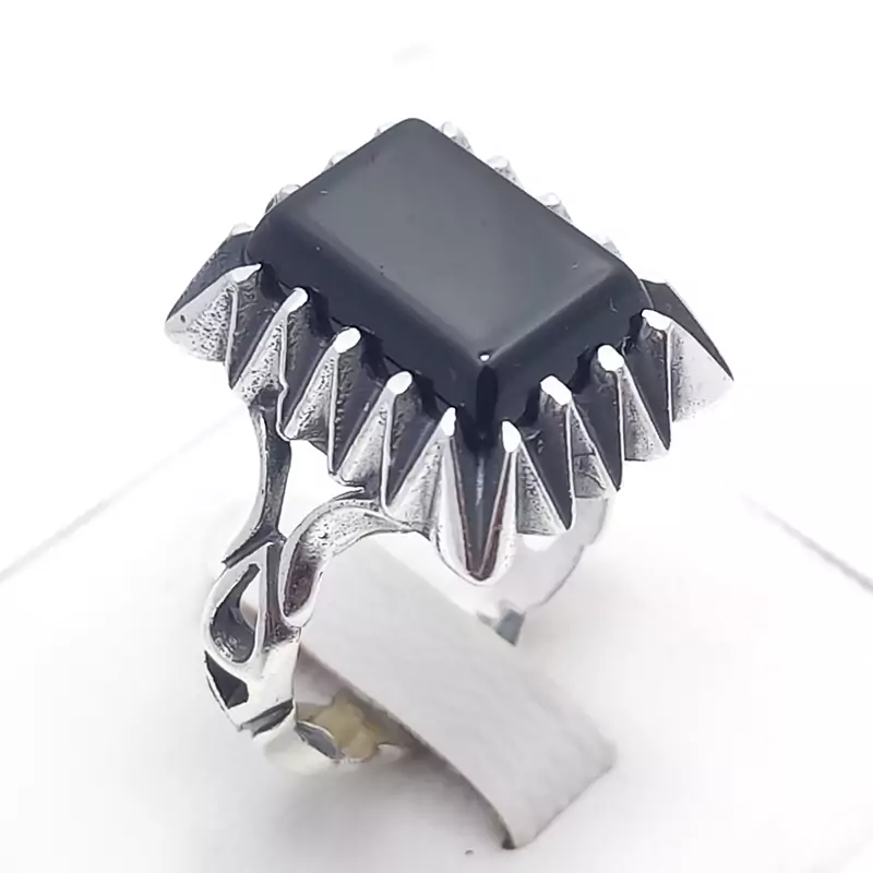 انگشتر نقره مردانه همراه با عقیق مشکی 3