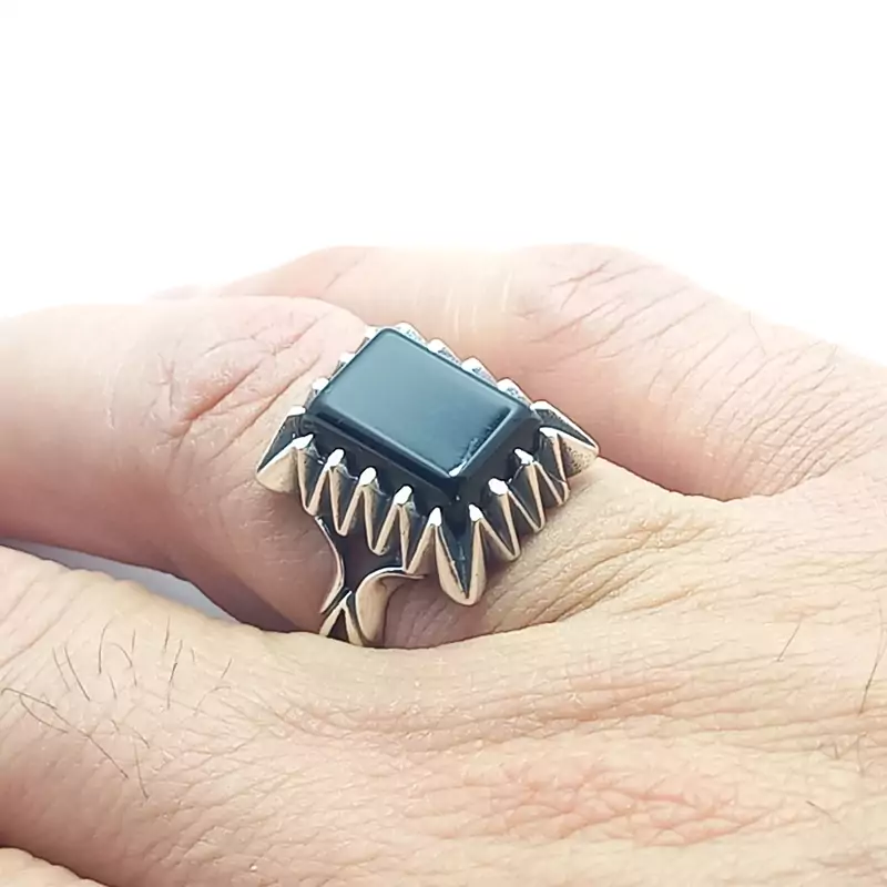 انگشتر نقره مردانه همراه با عقیق مشکی 3