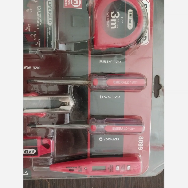 ست اقتصادی ابزار شامل متر3متری ،دوسو وچارسو،موکت بر ،بسته تیغ ،فازمتر وست پیچ گوشتی ساعتی