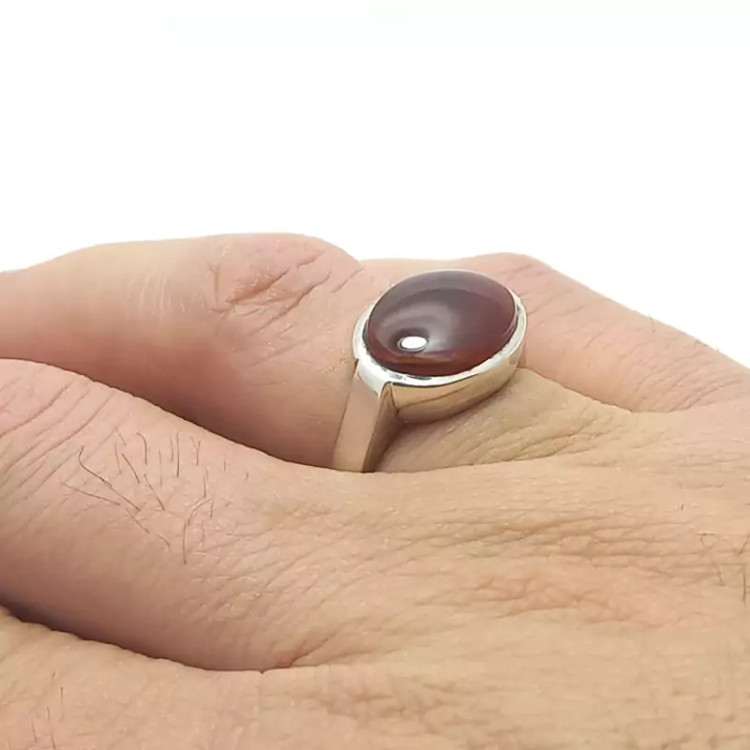 انگشتر نقره رکاب دست ساز مردانه همراه با عقیق یمنی دارای حرز امام جواد علیه السلام