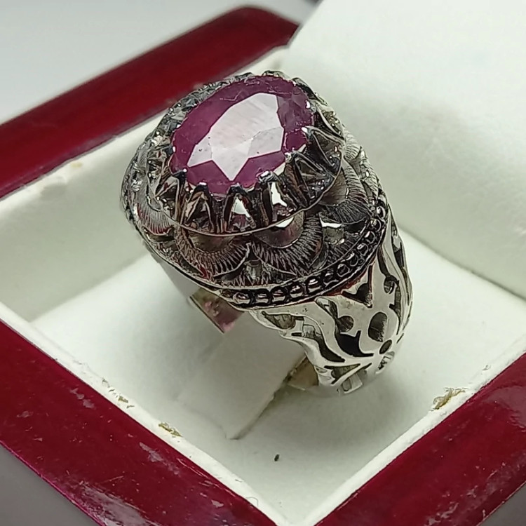 انگشتر نقره با نگین یاقوت قرمز دستاز با روکش رادیوم