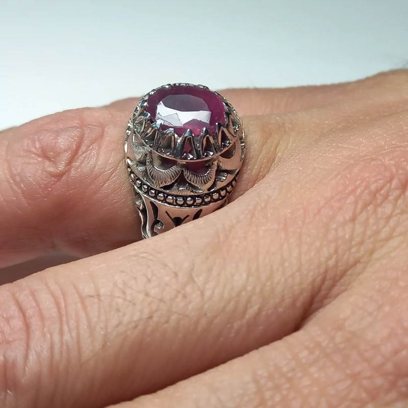 انگشتر نقره با نگین یاقوت قرمز دستاز با روکش رادیوم