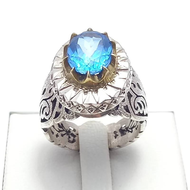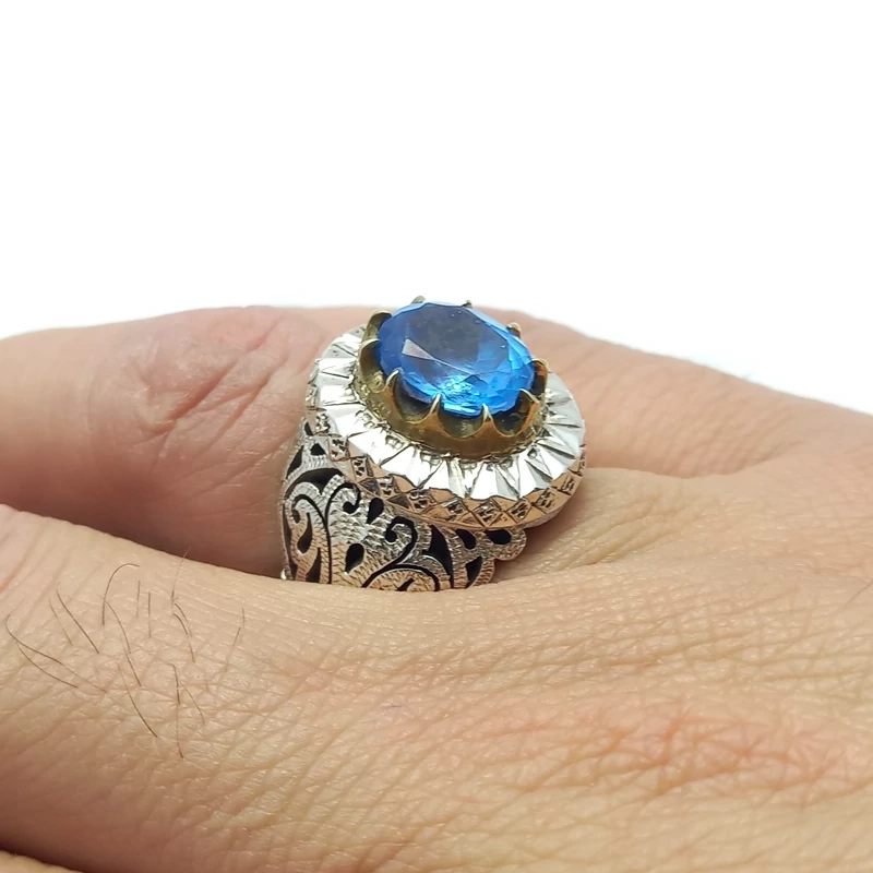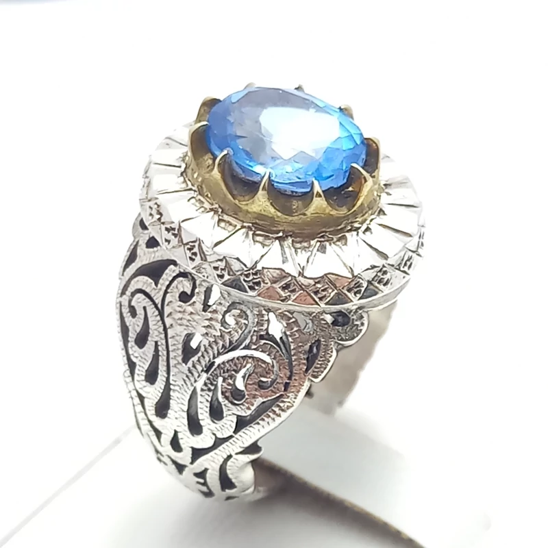 انگشتر نقره رکاب دست ساز مردانه همراه با توپاز اصل 1