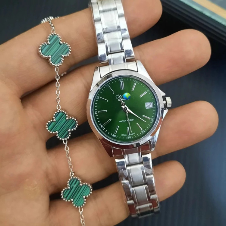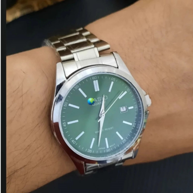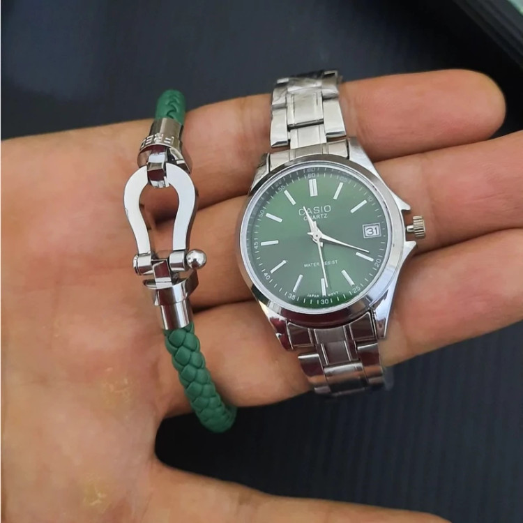 ساعت صفحه گرد کاسیو اولدمانی خطی ست زنانه و مردانه رنگ صفحه سبز