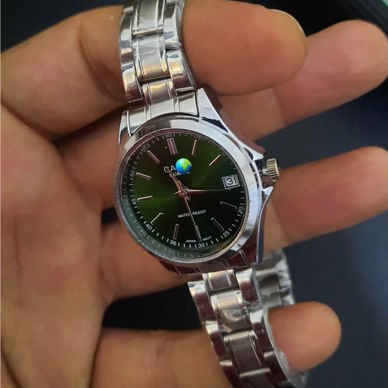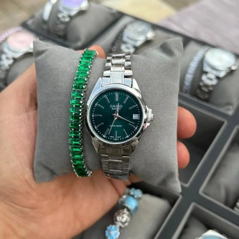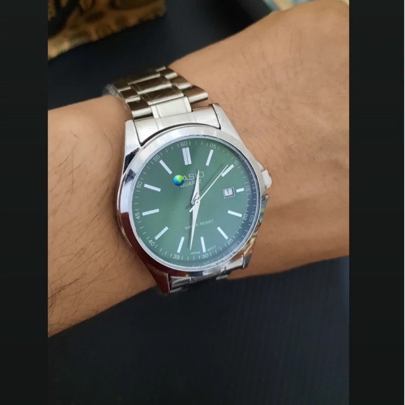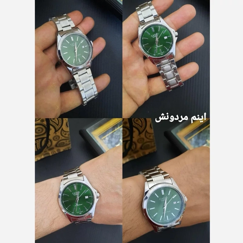 ساعت صفحه گرد کاسیو اولدمانی خطی ست زنانه و مردانه رنگ صفحه سبز