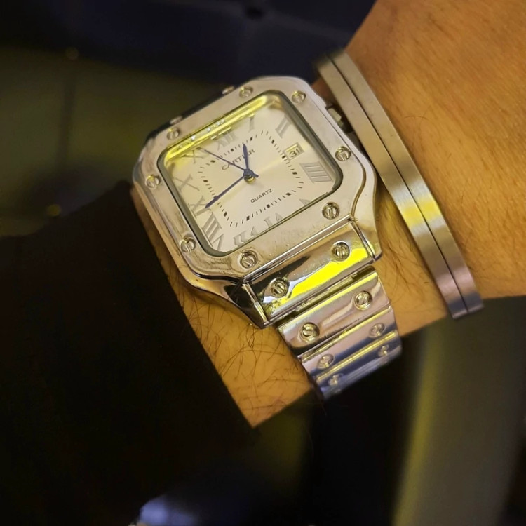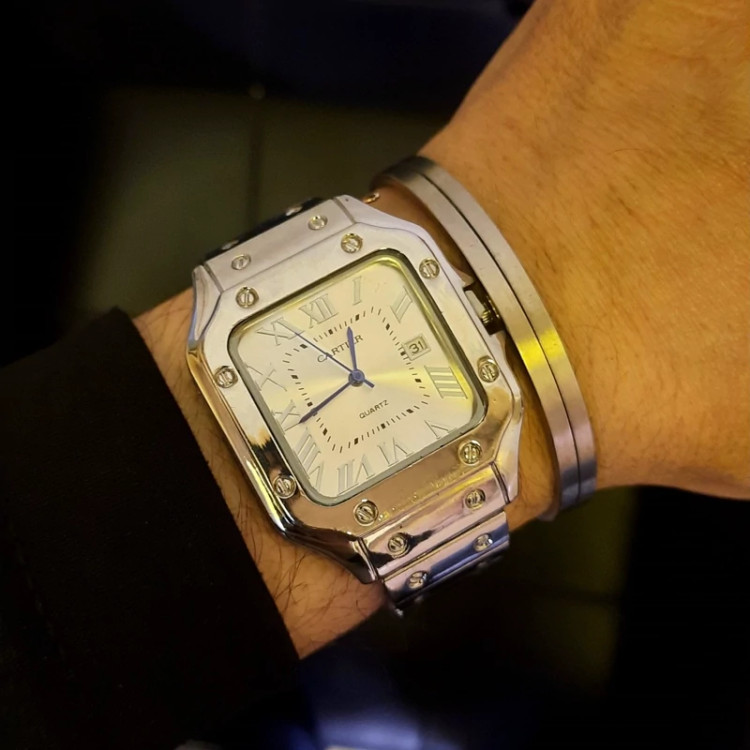 ساعت مردانه کارتیه سانتوس صفحه سفید کامل استیل