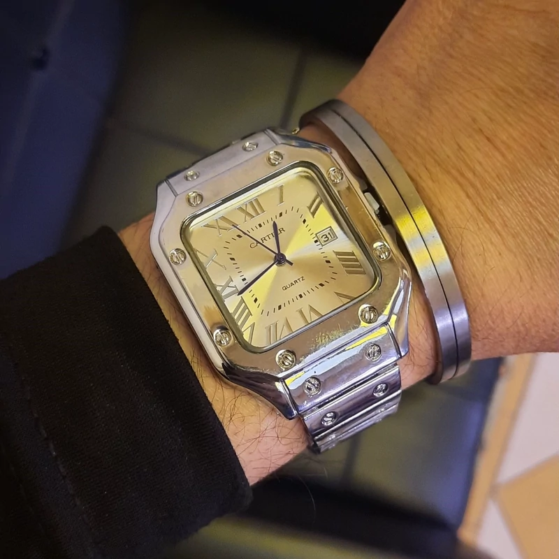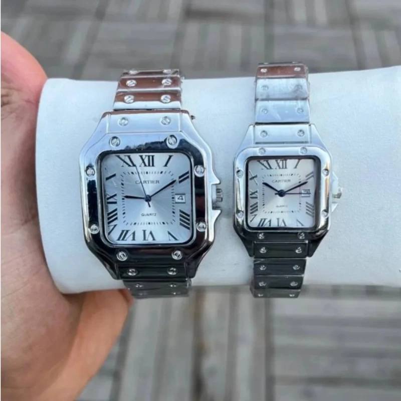 ساعت مردانه کارتیه سانتوس صفحه سفید کامل استیل