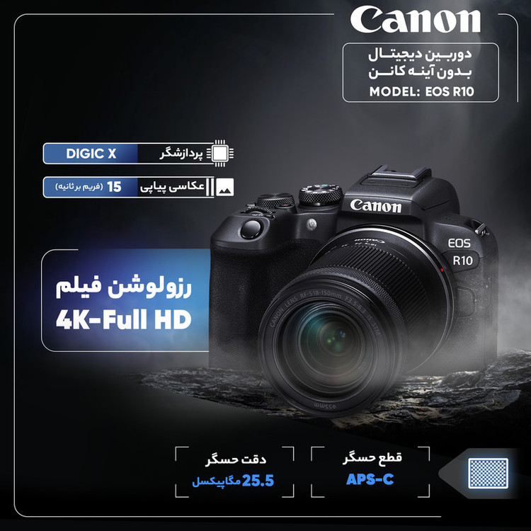 دوربین دیجیتال بدون آینه کانن مدل EOS R10 با لنز ۱۸ - ۱۵۰ میلی‌متر f/3.5 - f/6.3