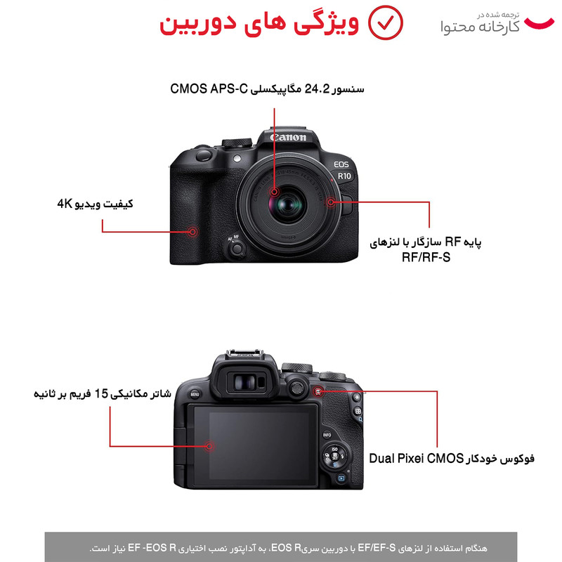 دوربین دیجیتال بدون آینه کانن مدل EOS R10 با لنز ۱۸ - ۱۵۰ میلی‌متر f/3.5 - f/6.3