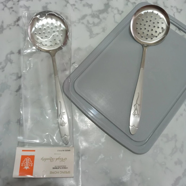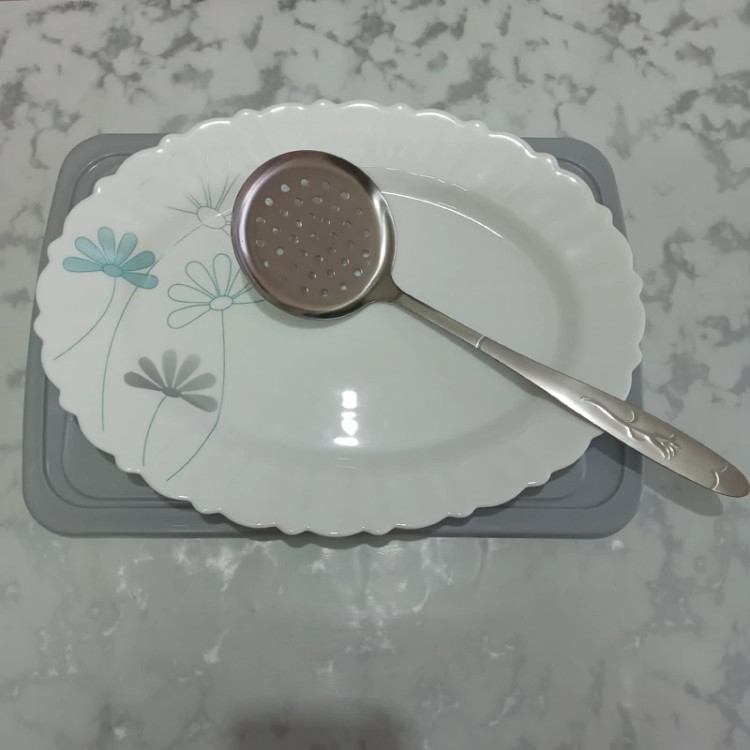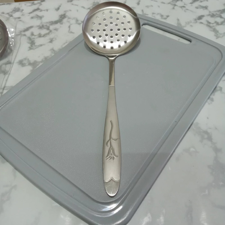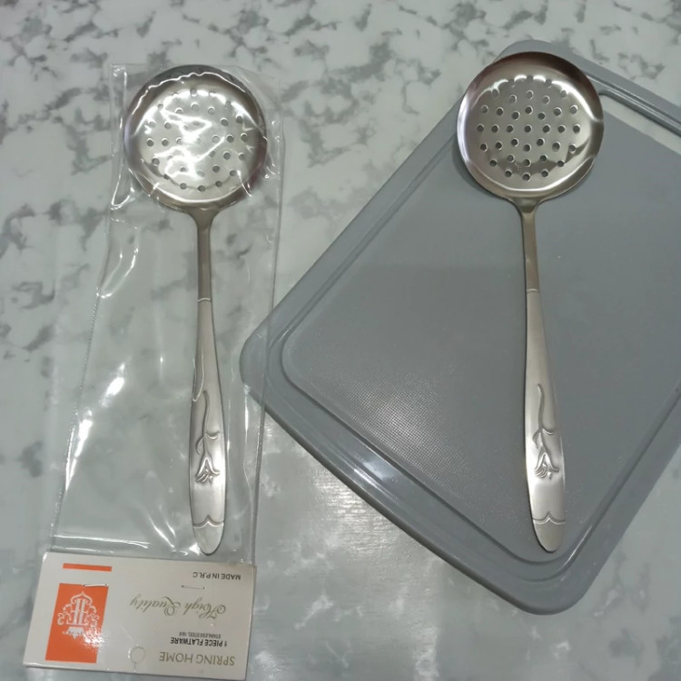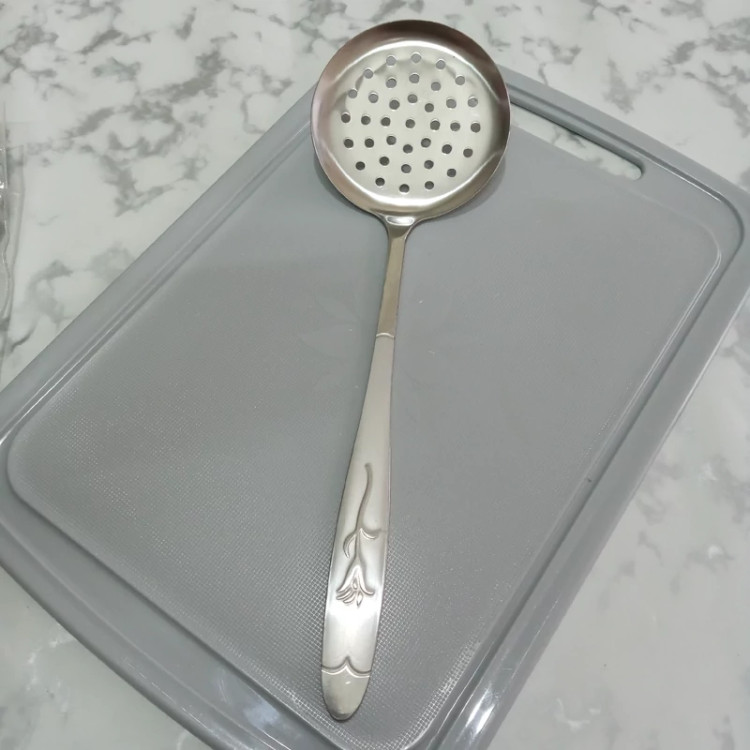کفگیر بزرگ سوراخ دار بسته یک عددی جنس فولاد زد زنگ عیار 18 ضخامت 3 میل
