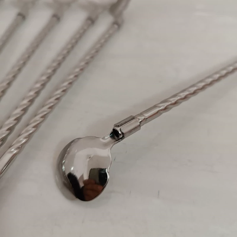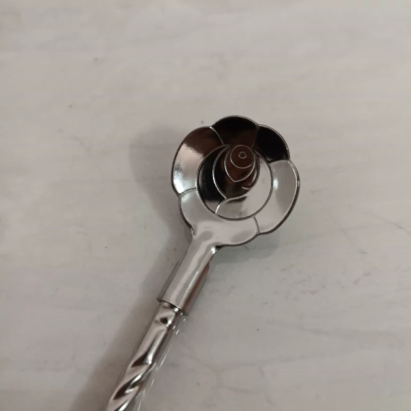 قاشق شربت خوری نی دار طرح گل نقره ای دارای 6 عدد قاشق نی دار شربت خوری به همراه فرچه تمیز کننده استیل ضد زنگ طرح گل حک شده روی قاشق