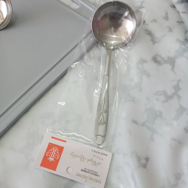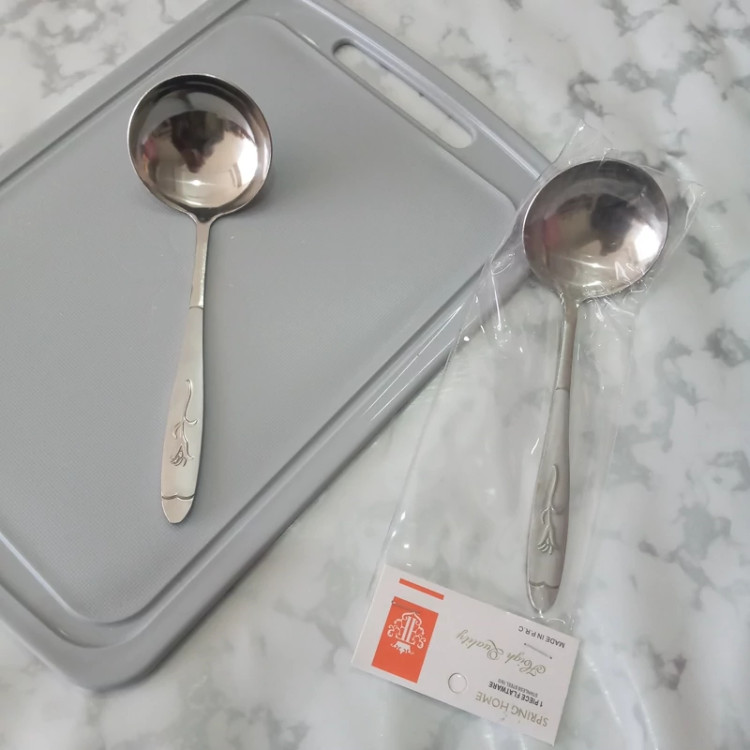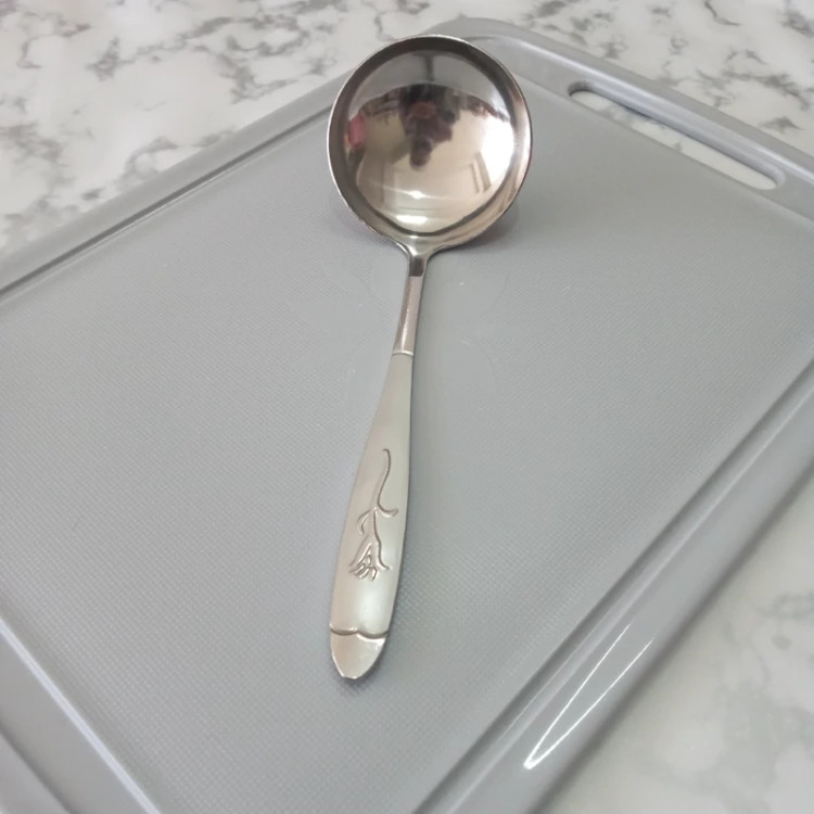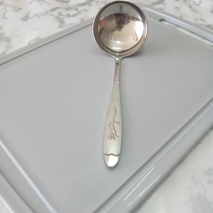 ملاقه کوچک (ماست خوری ) طرح گل میخک بسته یک عددی جنس فولاد زد زنگ عیار 0 از 18 ضخامت 2 میل