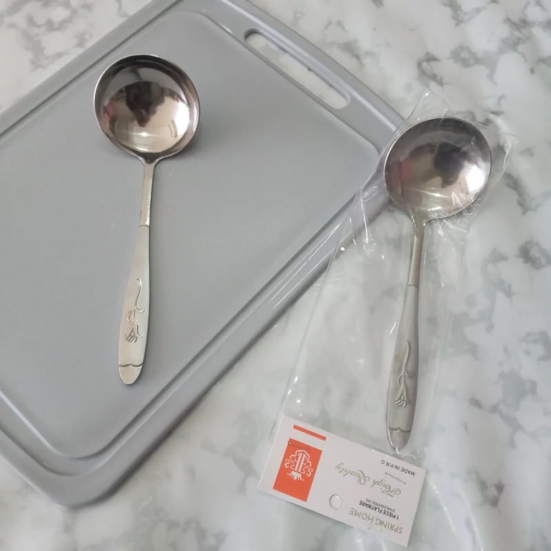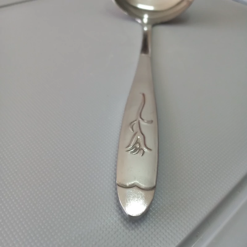 ملاقه کوچک (ماست خوری ) طرح گل میخک بسته یک عددی جنس فولاد زد زنگ عیار 0 از 18 ضخامت 2 میل