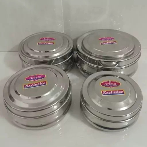 این محصول 4 تکه از برند آریستو استیل هندی است. فوق العاده با کیفیت و با ظاهری زیبا مناسب برای نگهداری غذا در داخل یخچال استفاده شده از ورق ضخیم محکم و بادوام صد در صد استیل
