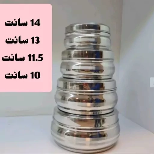 ظرف غذا استیل 4 عددی استیل هندی آهنربا نگیر ( ظرف نگه دارنده )
