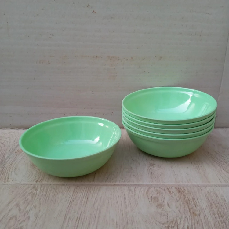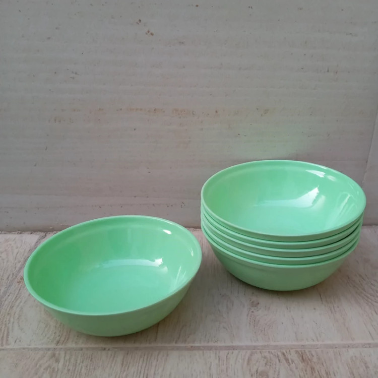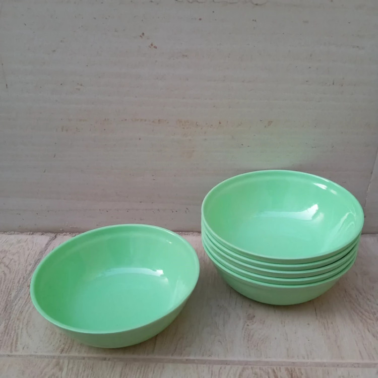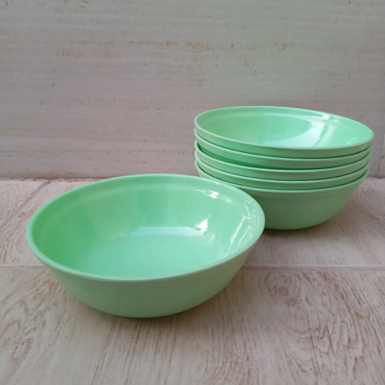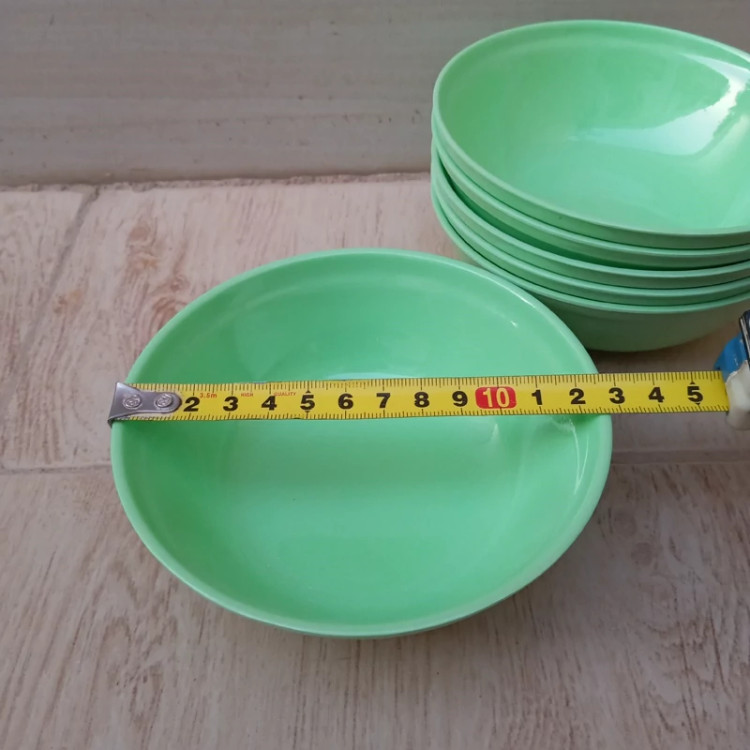 کاسه ماست خوری ملامین رنگی سبز مارک یزد ملامین دارای استاندارد مواد درجه یک تعداد شش عددی سایز 12.5 در ارتفاع 4