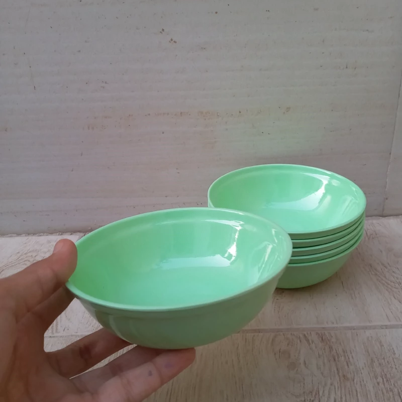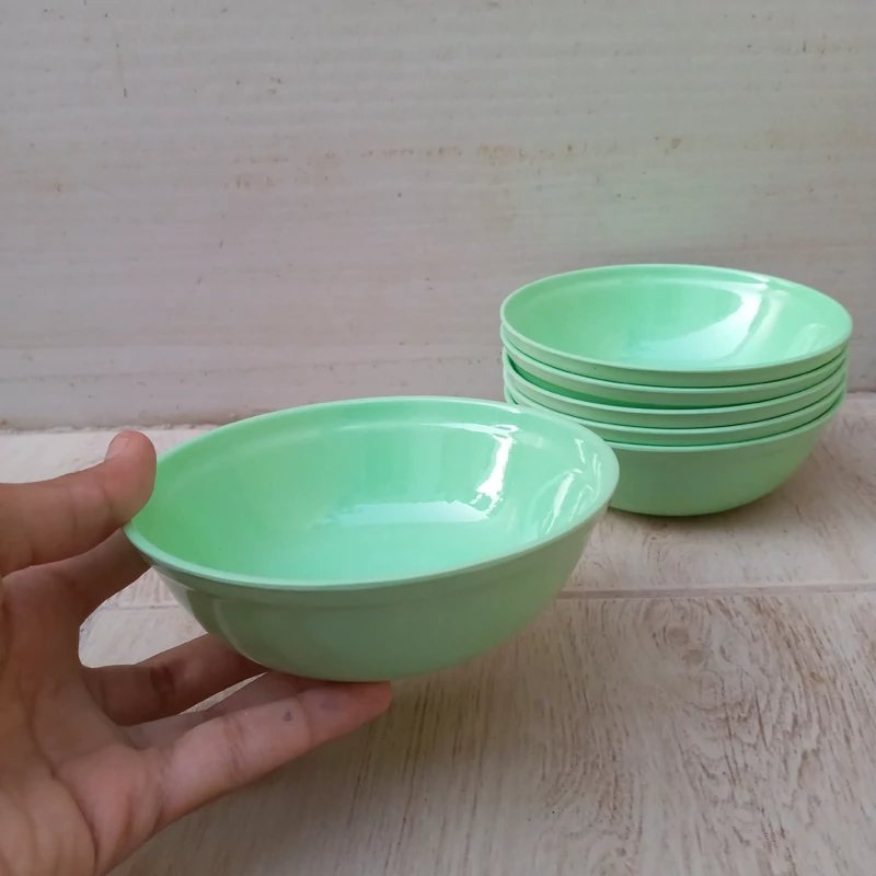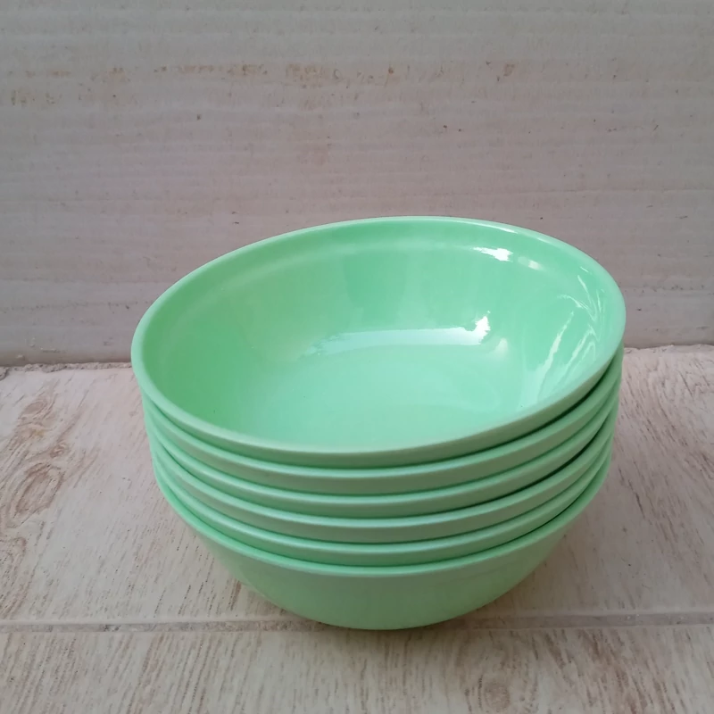 کاسه ماست خوری ملامین رنگی سبز مارک یزد ملامین دارای استاندارد مواد درجه یک تعداد شش عددی سایز 12.5 در ارتفاع 4