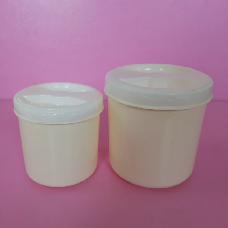 جا حبوبات یا جا ادویه پلاستیکی 2 عددی کوچک و متوسط رنگ زرد کم رنگ درب پیچی