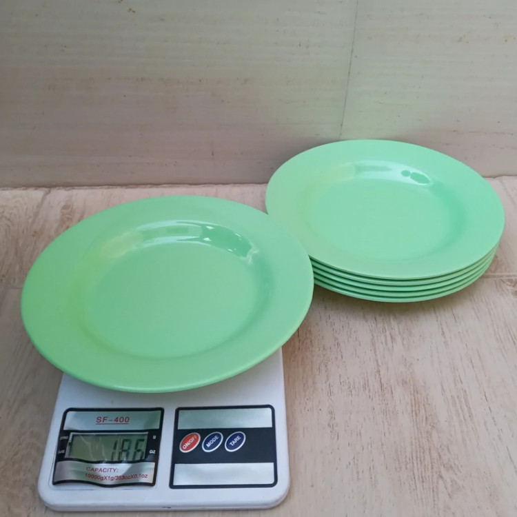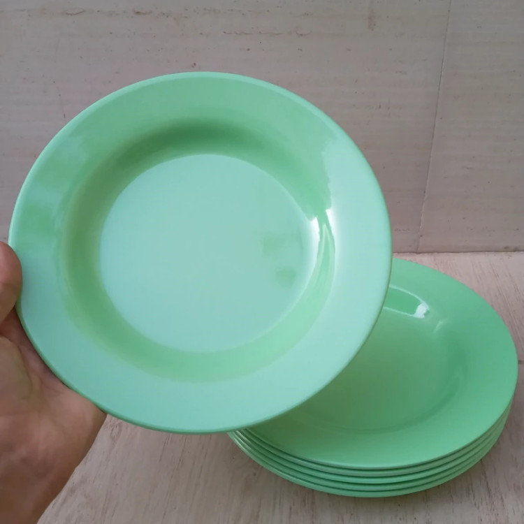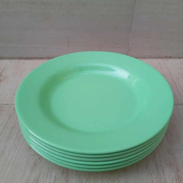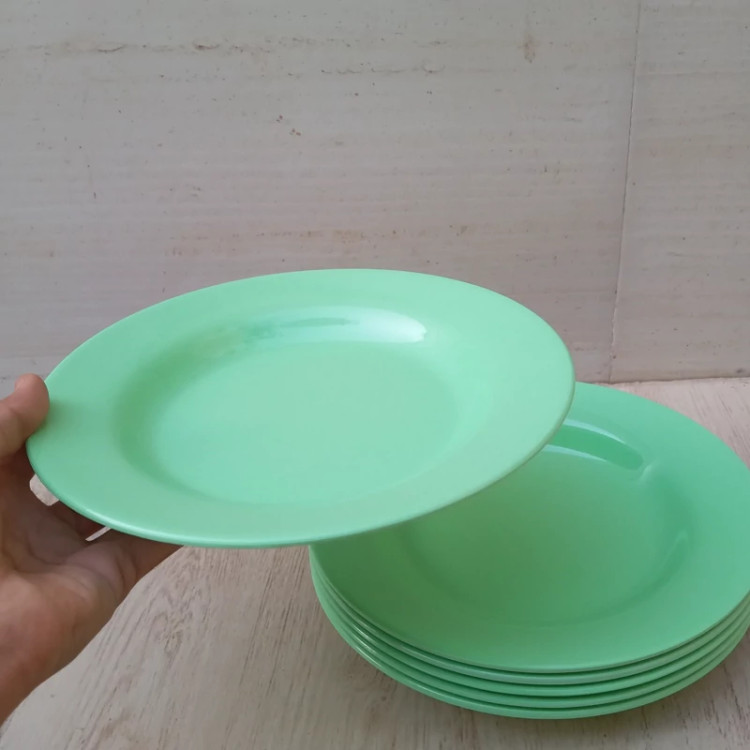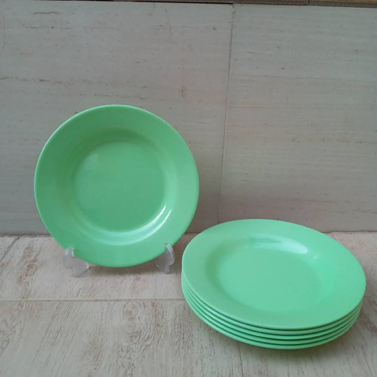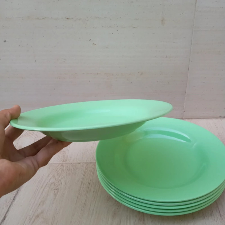 بشقاب خورشت خوری ملامین رنگی سبز مارک صنایع تولیدی شیرکوه ملامین یزد دارای استاندارد مواد درجه یک تعداد شش عددی سایز 21