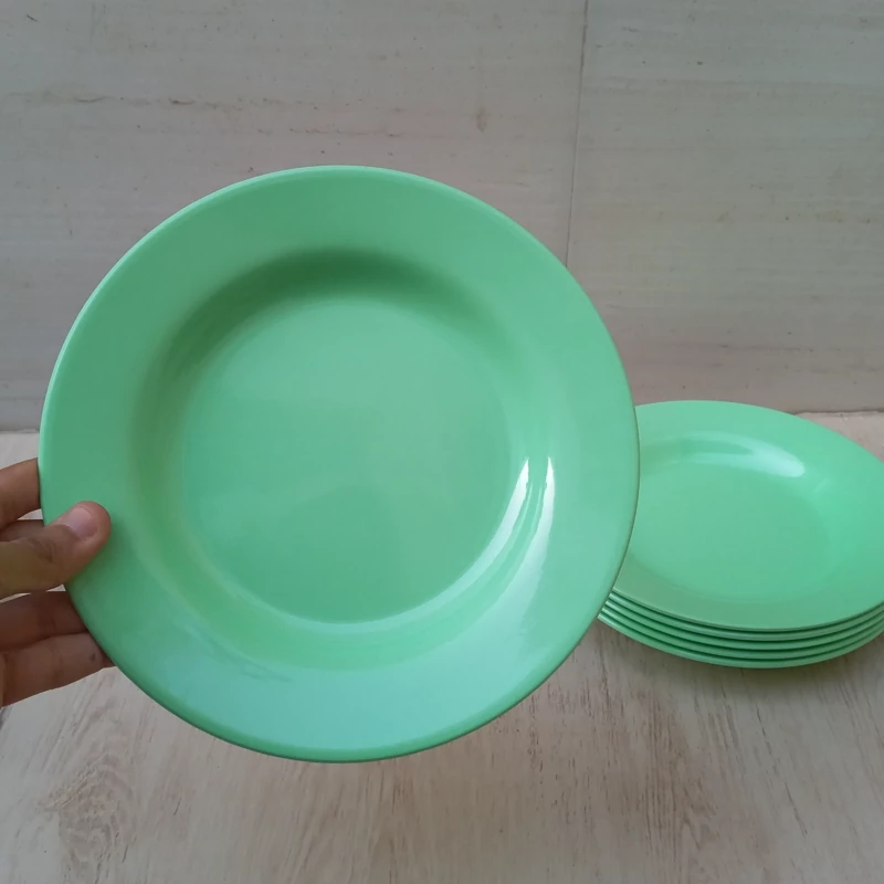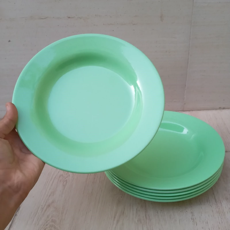 بشقاب خورشت خوری ملامین رنگی سبز مارک صنایع تولیدی شیرکوه ملامین یزد دارای استاندارد مواد درجه یک تعداد شش عددی سایز 21
