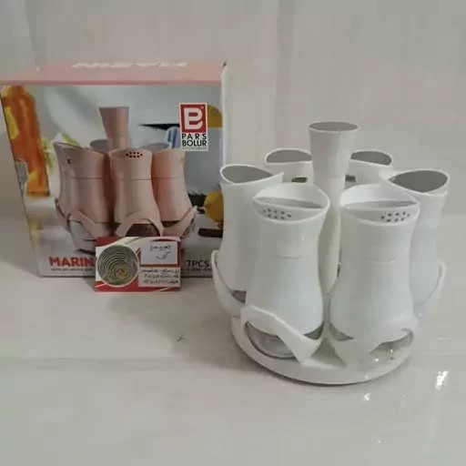 جا ادویه چرخشی 7 پارچه مارین همراه با استند سفید ( ست جاادویه )