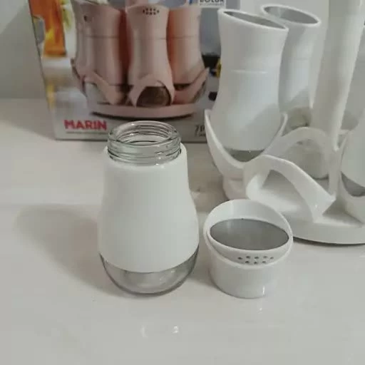 جاادویه چرخشی مارک مارین 7 پارچه شامل 6 عدد جا ادویه و یک عدد هم استند دارای شبکه چرخشی جنس شیشه ای با روکش پلاستیک فشرده جنس استند پلاستیک فشرده مقاوم