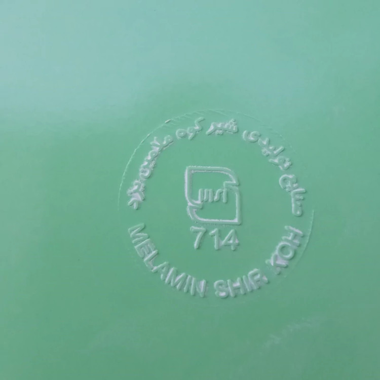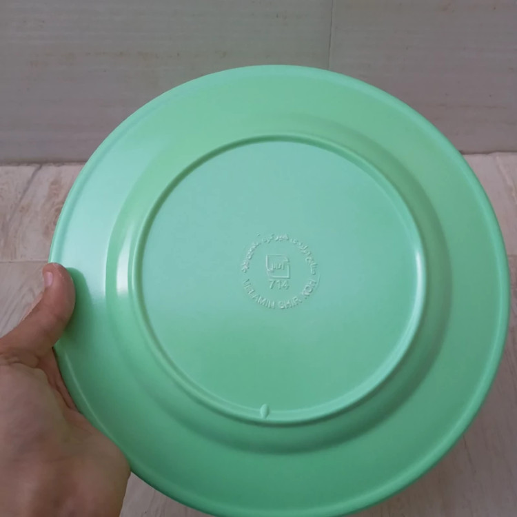 بشقاب برنج خوری ملامین رنگی سبز مارک صنایع تولیدی شیرکوه ملامین یزد دارای استاندارد مواد درجه یک تعداد یک عددی سایز 23