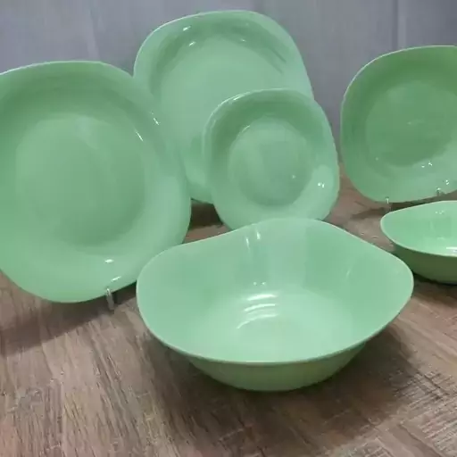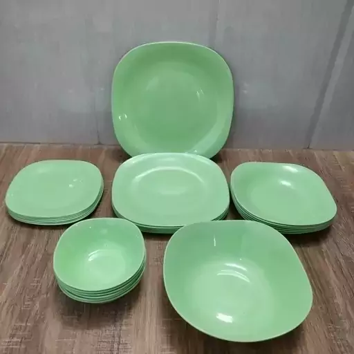 سرویس 26 پارچه ملامین مربع رنگی رنگ سبز درجه یک و دارای استاندارد مارک یزد ملامین شامل
