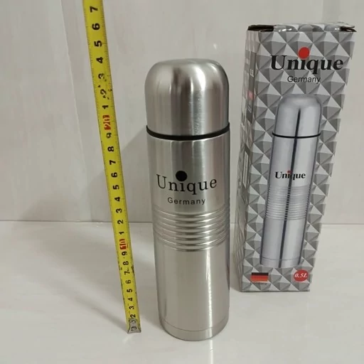 فلاسک چایی و آب یخ نیم لیتری جنس استیل جنس بسیار عالی و قیمت مناسب مارک یونیک لایف مناسب برای نگهداری گرمای چای و سرد