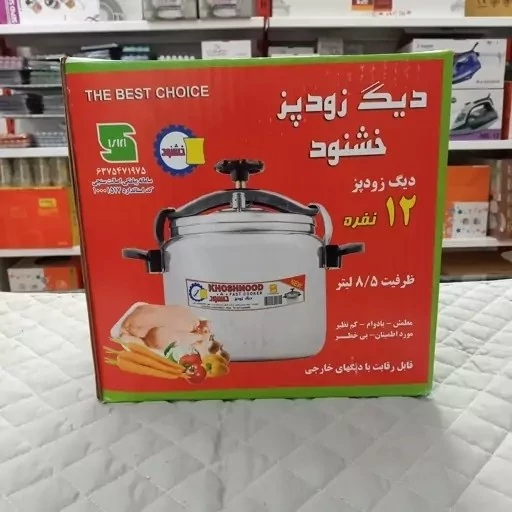 زودپز و دیگ بخار دو دسته مارک خشنود 12 نفره و گنجایش 8.5 لیتر دارای استاندارد مطمئن-بادوام-کم نظیر مورد اطمینان