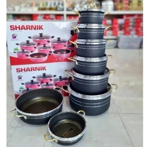 سرویس قابلمه 14 پارچه شارنیک دسته طلایی زنبوری