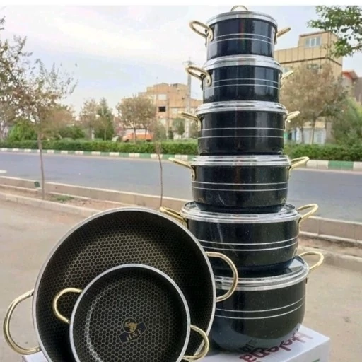 سرویس قابلمه 14 پارچه شارنیک دسته طلایی زنبوری